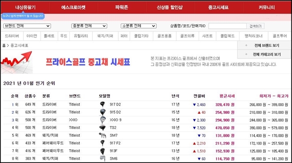 골프투게더, 골투 홈페이지를 이용하셔도 됩니다. 중고시세표와 내상품팔기, 경매상품 등에 대한 정보를 확인하여 보실 수 있습니다.