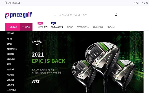 프라이스 골프 사이트는 중고 골프채 직거래, 보상, 위탁매매 등의 서비스를 제공하고 있습니다. 아래와 같이 홈페이지에 접속하시면 'SELL 내상품팔기' 카테고리가 있습니다. 회원가입 및 본인인증 후 진행해주시면 됩니다.